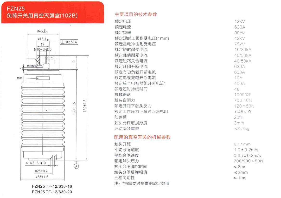 FZN25負(fù)荷開關(guān)用真空滅弧室(102B)