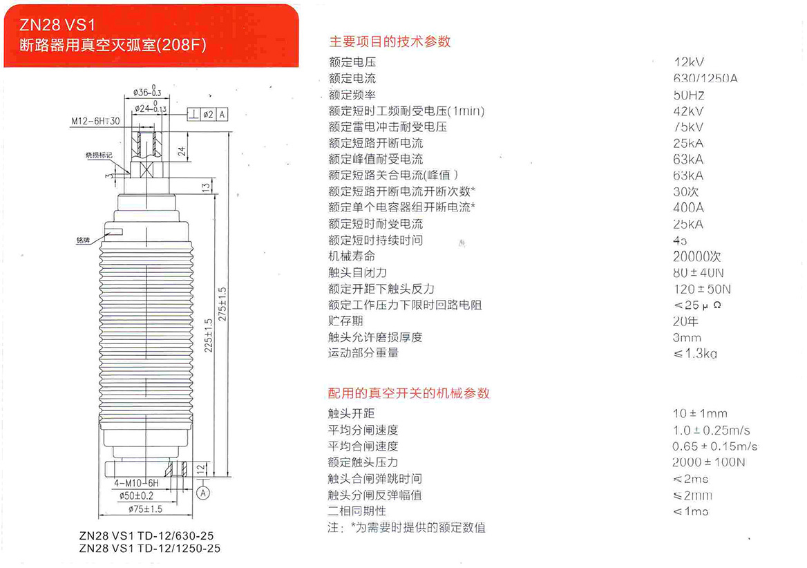 ZN28 VS1斷路器用真空滅弧室(208F)